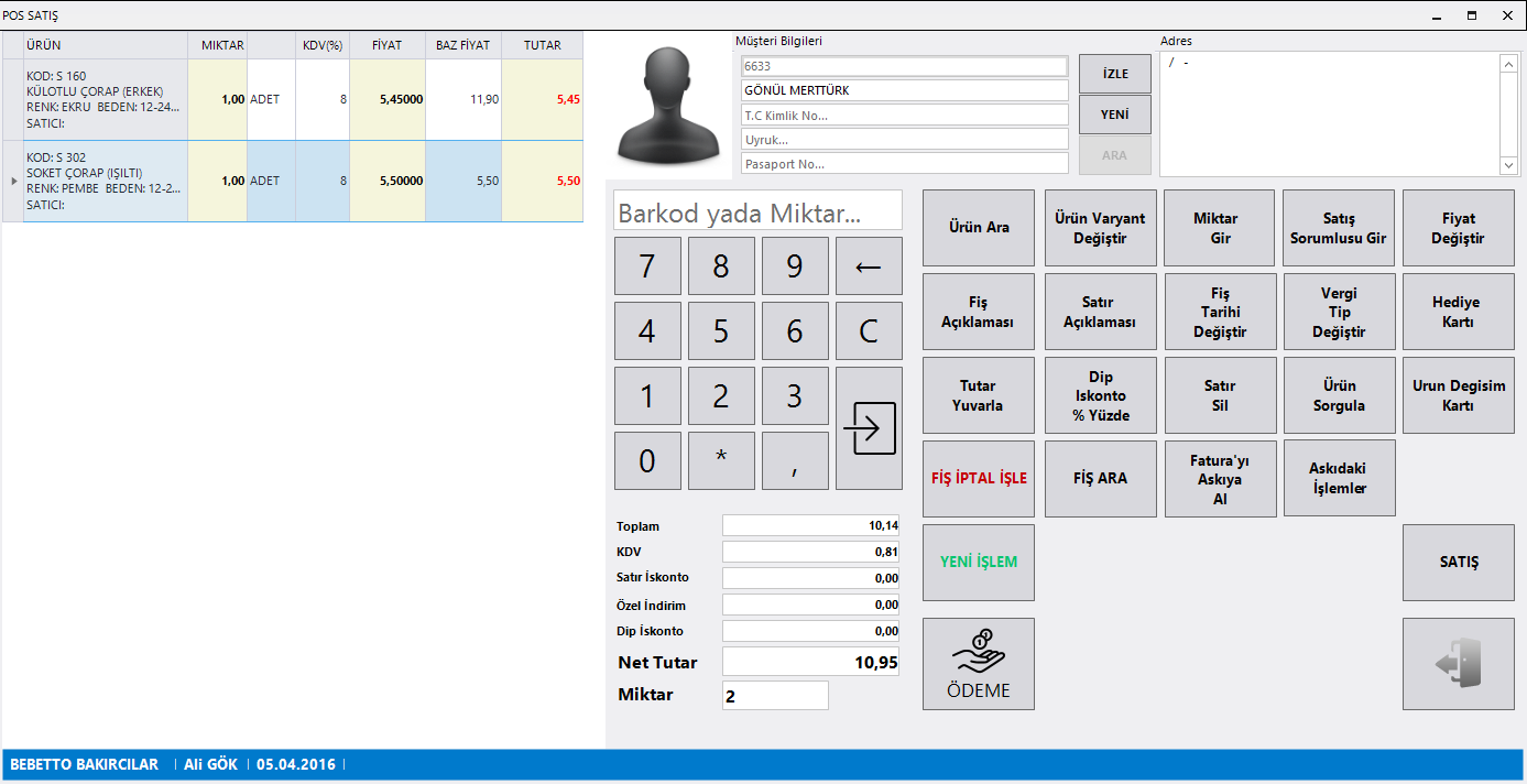 - Dokunmatik satış ekranı ile barkodlu ürün satışı