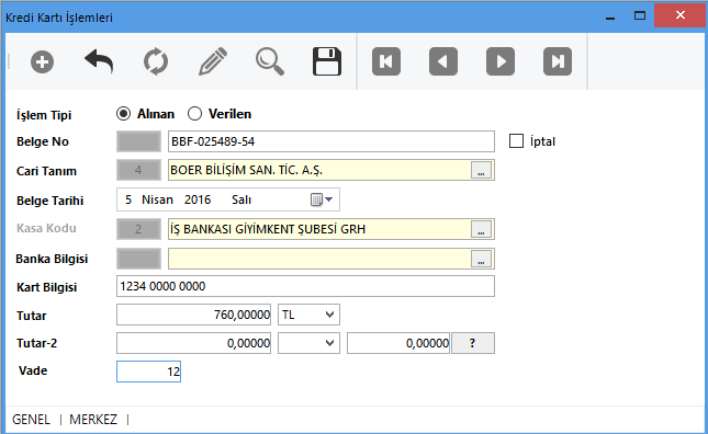 Kredi kartı işlemleri ile cari hesaplarınıza bağlı olarak kart ödemelerinizi yada tahsilatlarınızı işleyebilir, ödeme vadesi tanılayabilirsiniz.