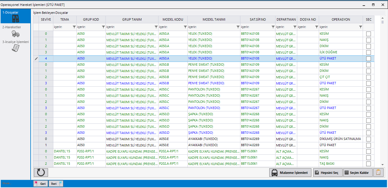 Siparişlerinizi birden çok tarihe göre renk-beden bazında sevk edebilir, yükleme adetlerinizi tanımlayarak siparişlerinizin durumlarını izleyebilirsiniz.