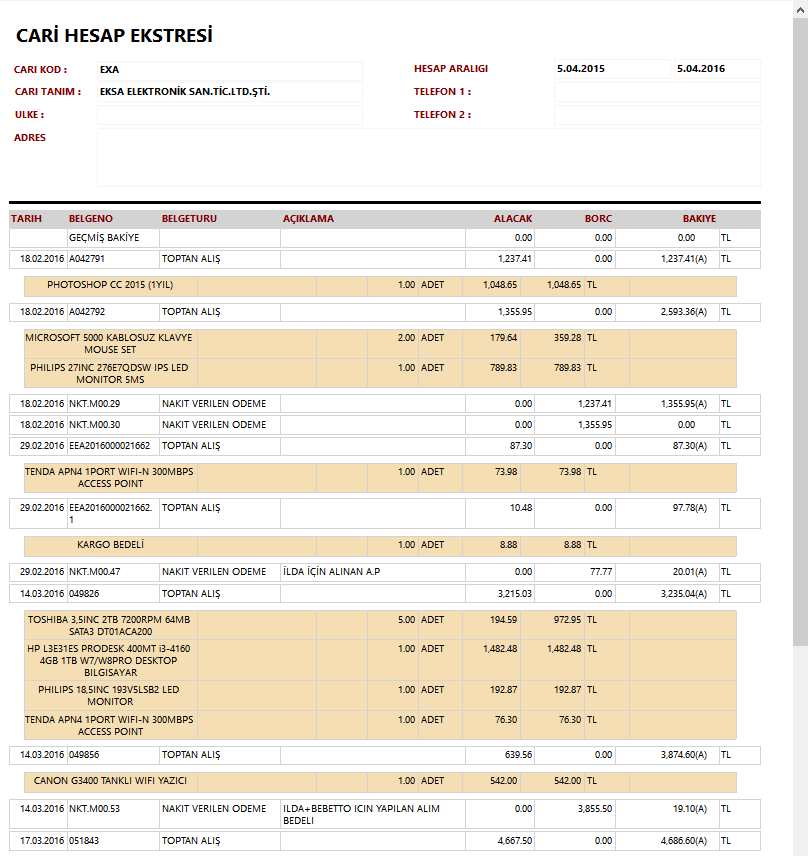 Cari hareketleriniz kontrol altında