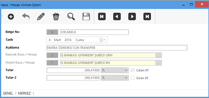 Kasalarınız arasında farklı döviz tiplerinde para hareketi yapabilir yada aynı kasa içinde dövizli dönüşüm işlemleri sağlayabilirsiniz.