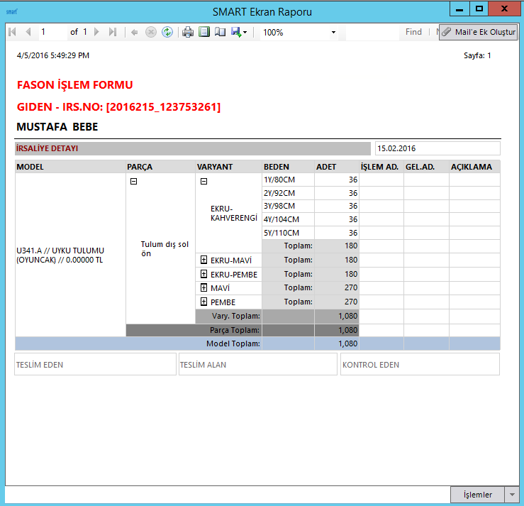 Siparişlerinizi birden çok tarihe göre renk-beden bazında sevk edebilir, yükleme adetlerinizi tanımlayarak siparişlerinizin durumlarını izleyebilirsiniz.